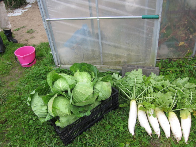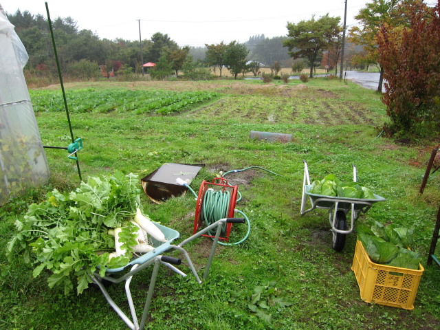 この日は、ハウス(トマト・パプリカ)の管理・収穫と露地の野菜収穫と来年度のための土づくりを行いました。