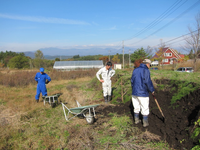 機械が無いので、人力で運んでいます。土づくりは大変です。